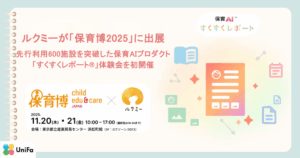 プレスリリースルクミーの保育AIプロダクト「すくすくレポート®」が正式提供を開始、保育博2025に出展